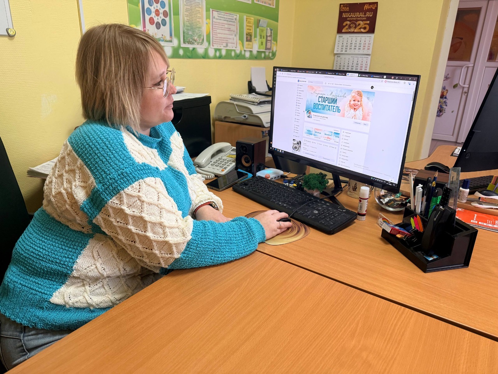 Ранее у воспитателя был другой сайт, но он не очень удобный для работы. Поэтому было принято решение о создании группы в ВК. В создании привлекательной группой Надежде помогли. Екатерина Рябинина из Дизайн студии создала оформление. Пожелаем коллегам успешного выступления и первого места на конкурсе!