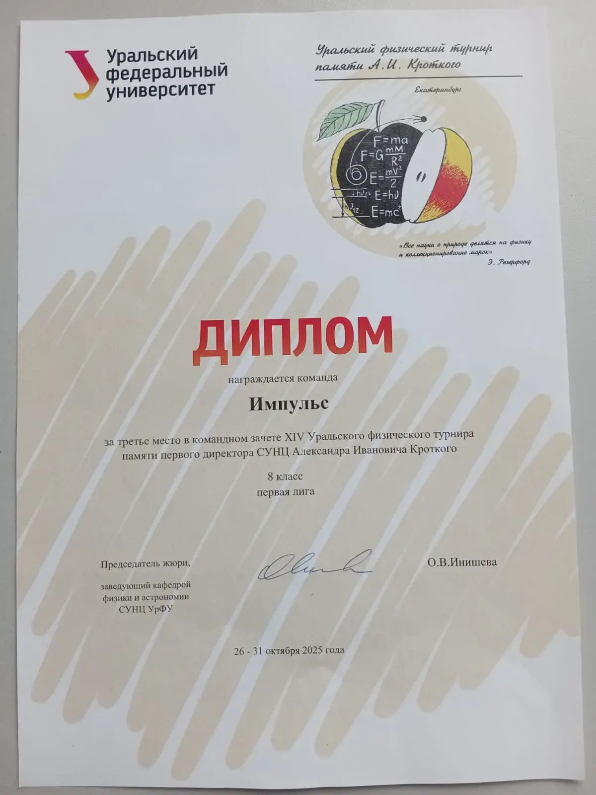 Сегодня в Екатеринбурге завершается пятидневный XIV Открытый физический турнир, который проходил на площадке СУНЦ УрФУ. Он был посвящен памяти первого директора СУНЦ Александра Ивановича Кроткого. Мероприятие по праву можно считать масштабным. В столицу Урала съехались 56 команд. География самая обширная: Москва, Санкт-Петербург, Уфа, Казань и многие другие. Полевской успешно выступил, показав достойные результаты.