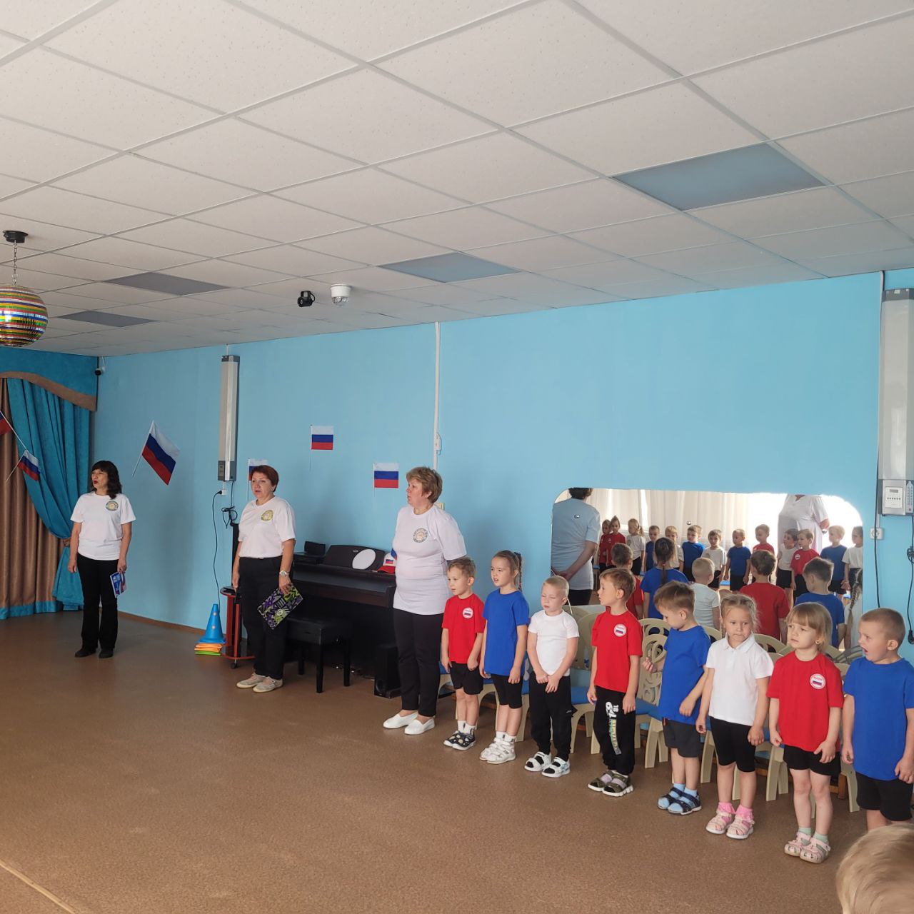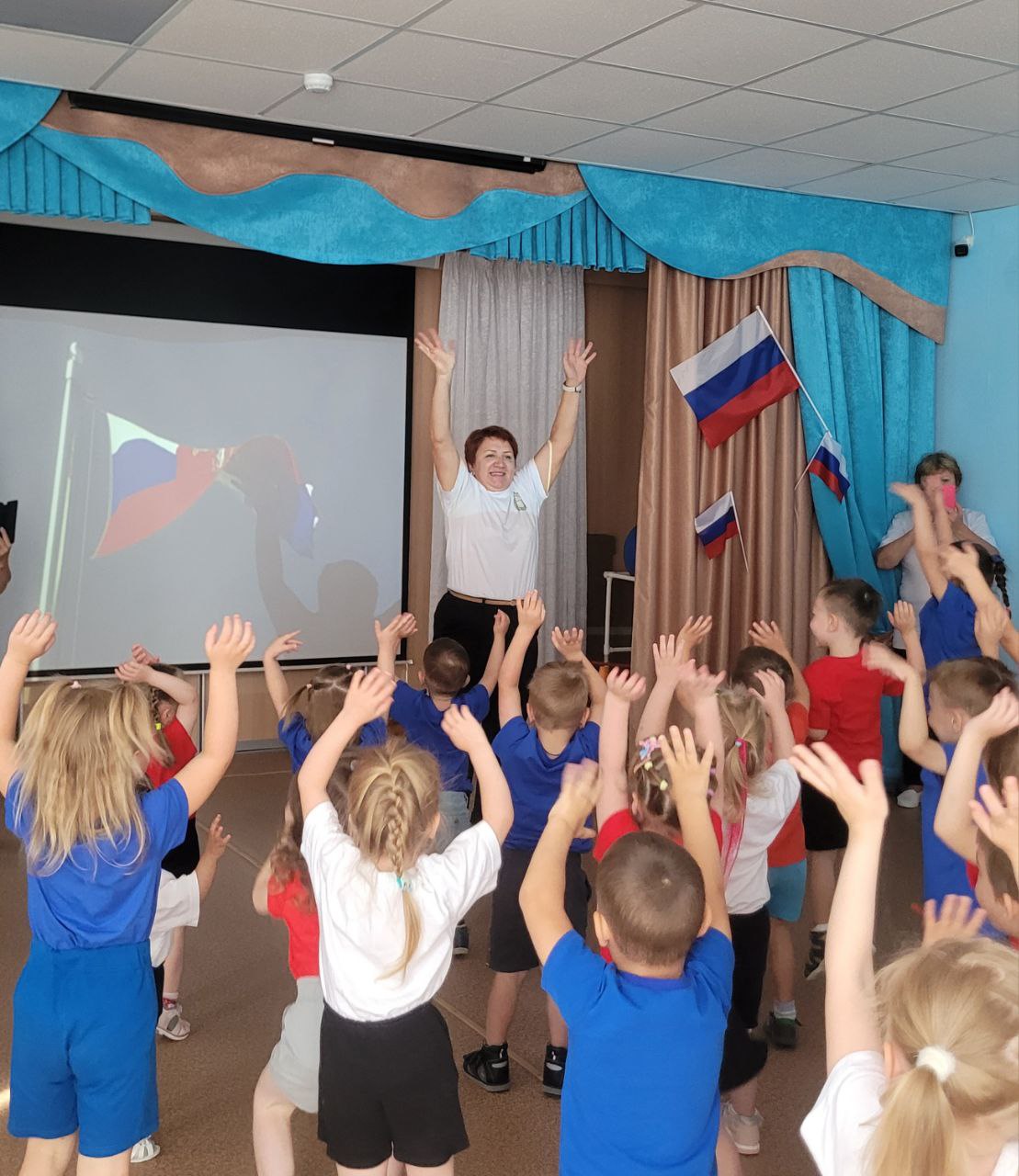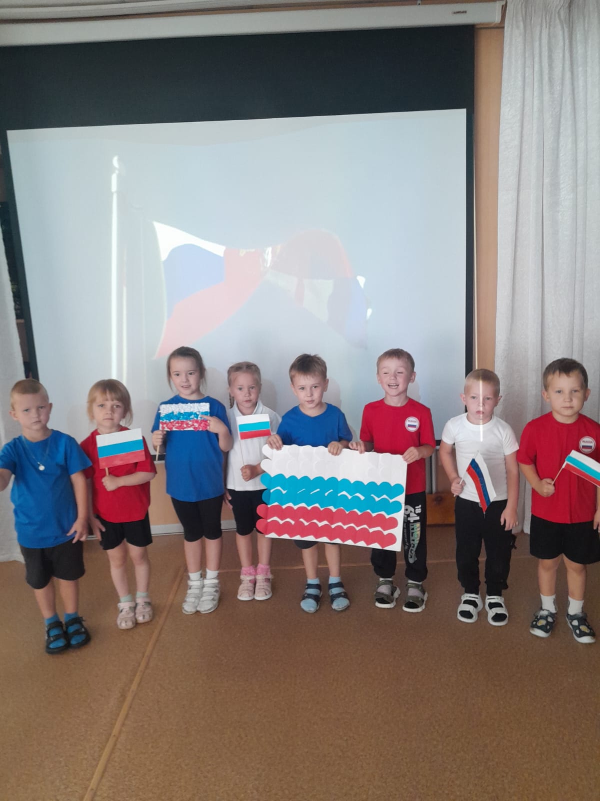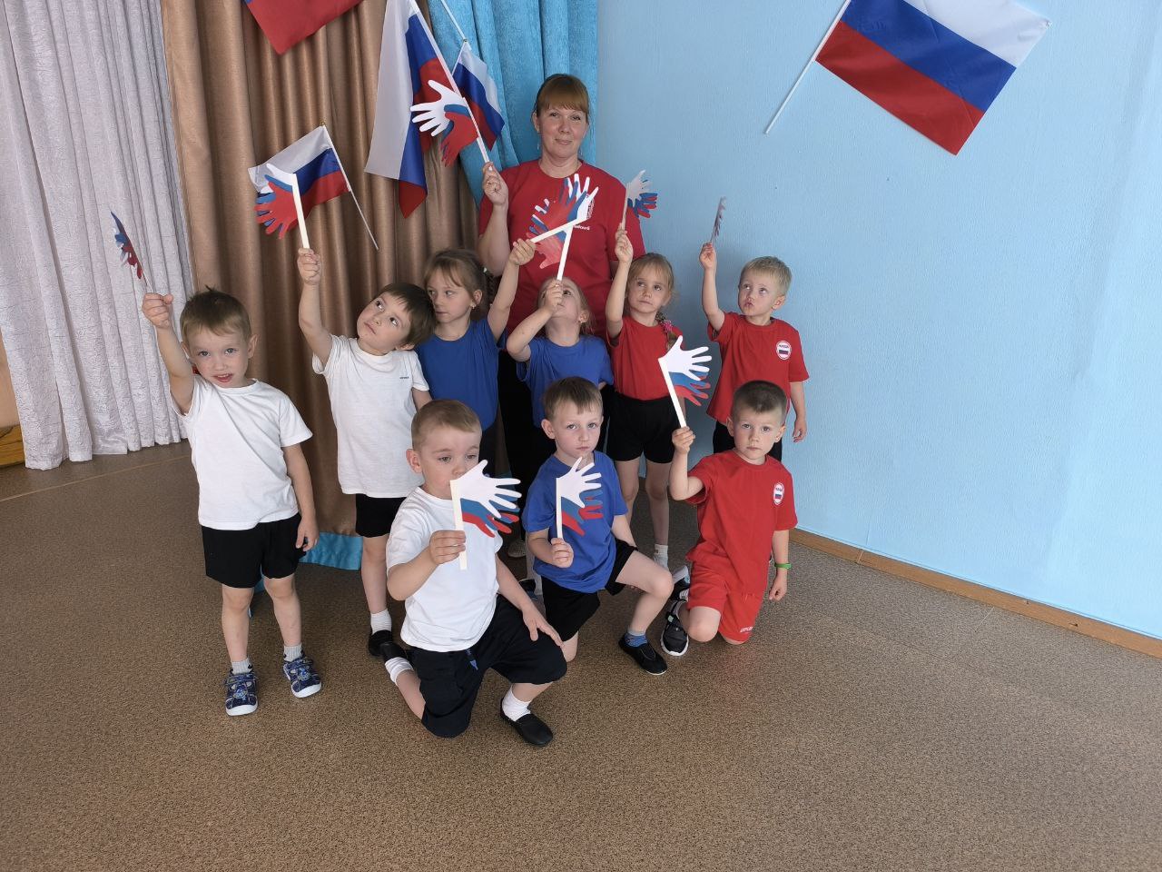 Маленькие патриоты из всех групп с энтузиазмом окунулись в атмосферу торжества: увлеченно разгадывали загадки, посвященные цветам родного триколора, проявляли зоркость и смекалку в игре “Белый, синий, красный”, а в веселой спортивной эстафете “Кто быстрее соберет флаг” продемонстрировали ловкость и сплоченность. Праздник получился ярким, запоминающимся.