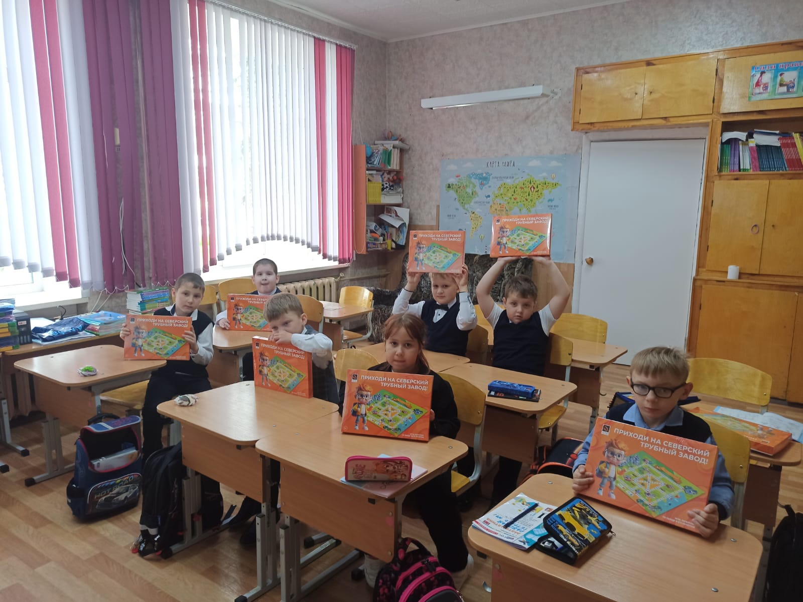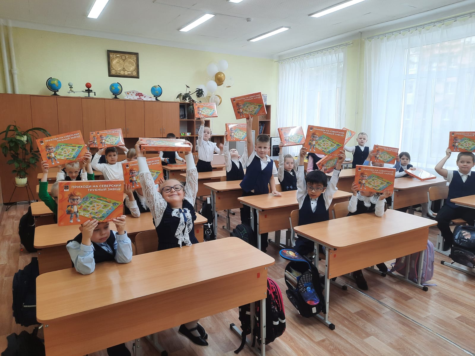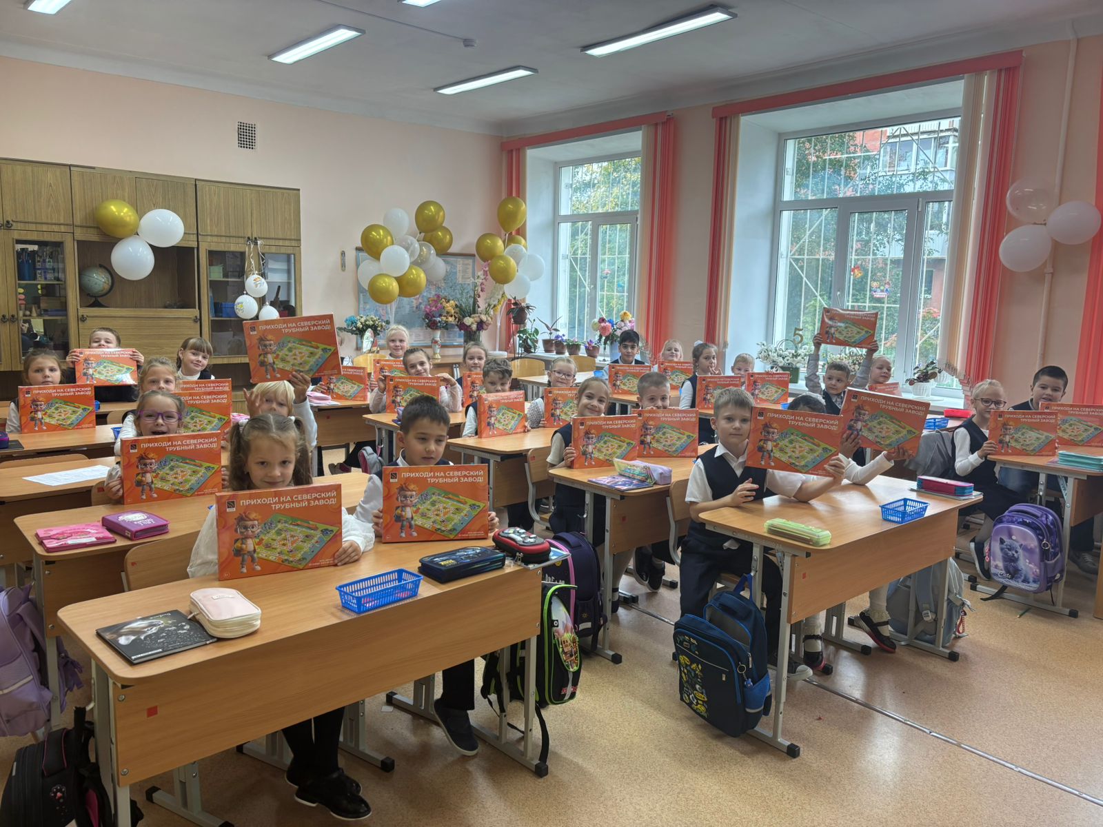 В понедельник, на уроке “Разговоры о важном”, первоклассники получили приятный сюрприз! АО “Северский трубный завод” порадовал ребят подарками.