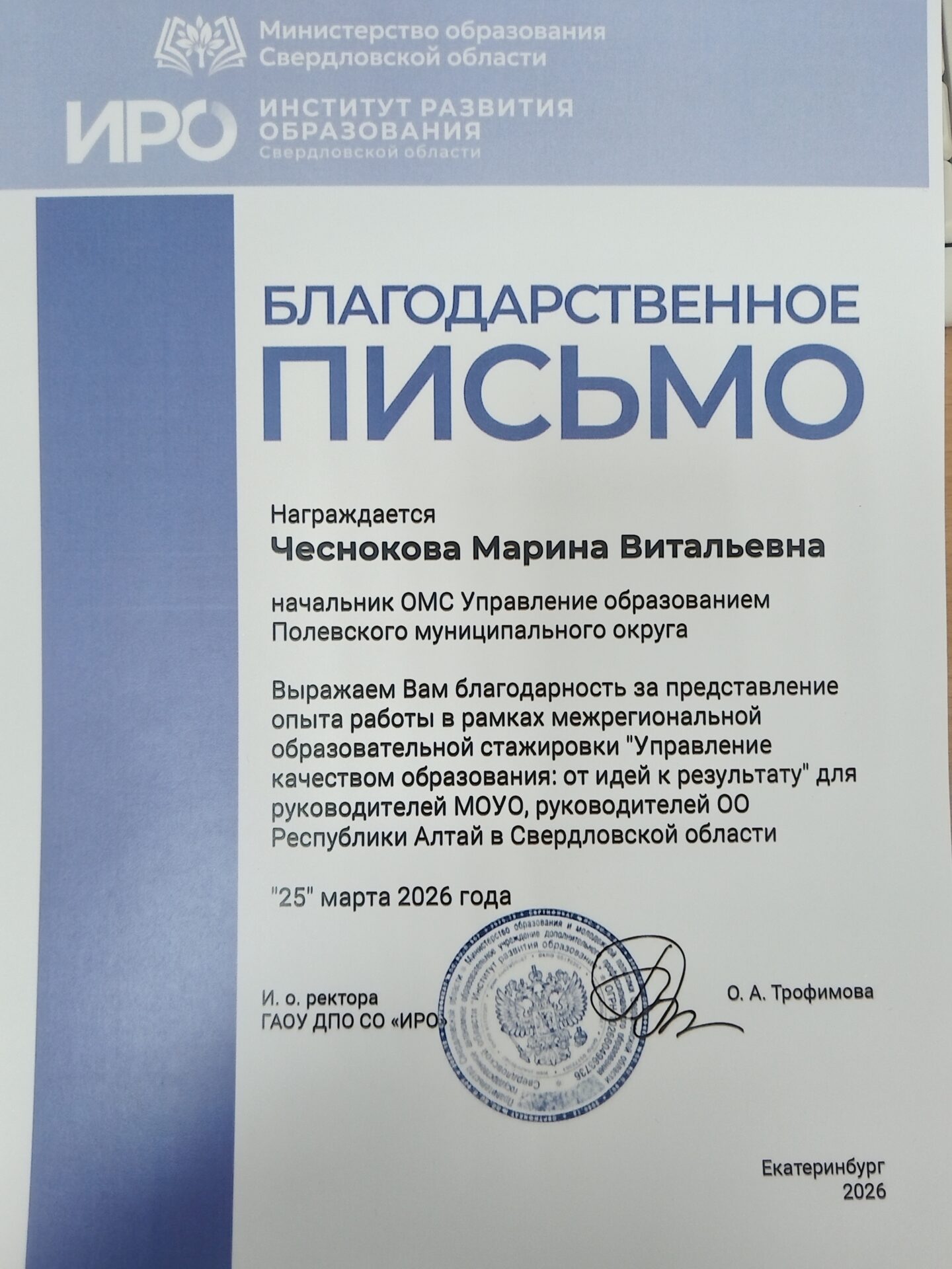 Участие в межрегиональной стажировке – это не только возможность поделиться нашими лучшими практиками, но и бесценный опыт для дальнейшего развития. . Уверены, что этот опыт поможет нам сделать систему образования Полевского муниципального округа еще более эффективной, современной и ориентированной на успех каждого ученика!