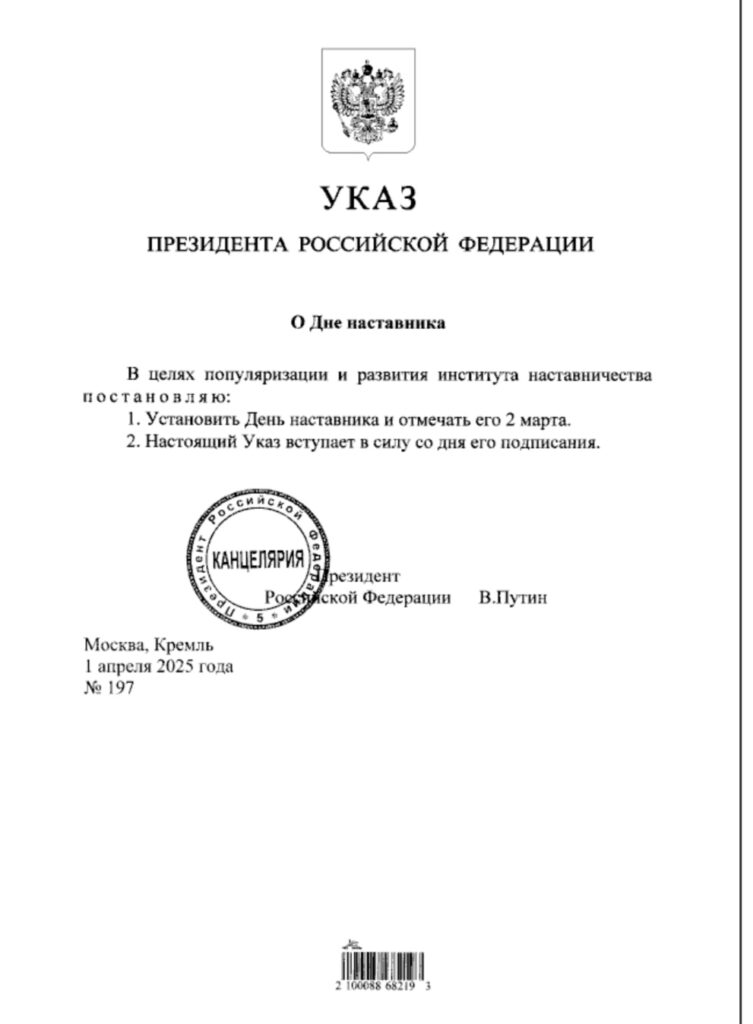 Сегодня особенный день – мы впервые отмечаем День наставника! Этот праздник, учрежденный указом Президента Владимира Владимировича Путина, стал долгожданным и заслуженным признанием вашего благородного труда на государственном уровне.