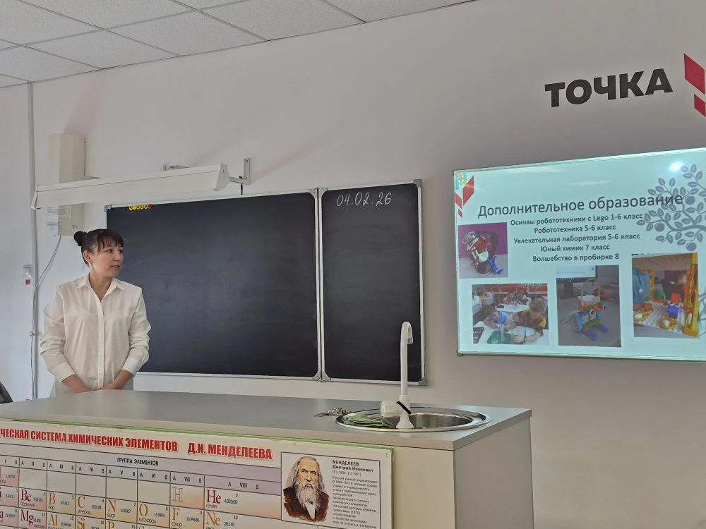 – Отчёт о проделанной работе: с докладом выступила Рудакова Линара Раушанбековна – руководитель центра “Точка роста” на базе МБОУ ПМО СО «СОШ п. Зюзельский». Она поделилась результатами и успешными практиками центра.